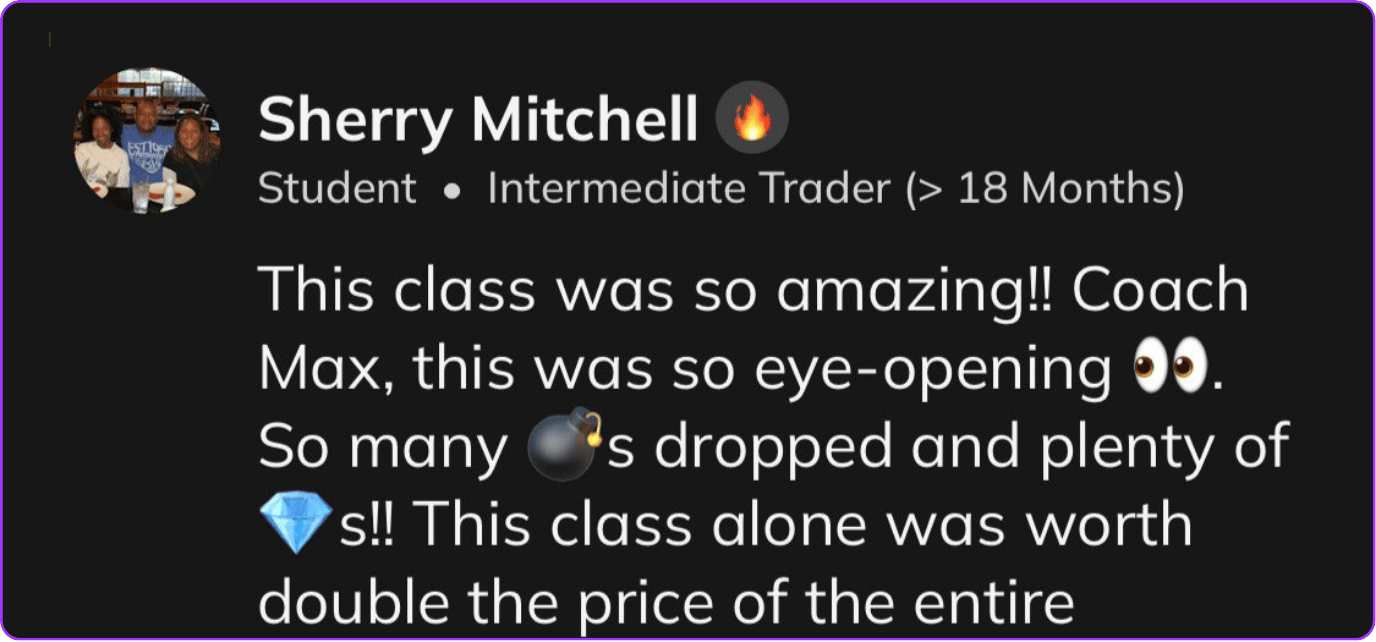 Over the years, she became known as the coach who can take a completely overwhelmed beginner and turn them into a disciplined, confident trader with a clear roadmap.